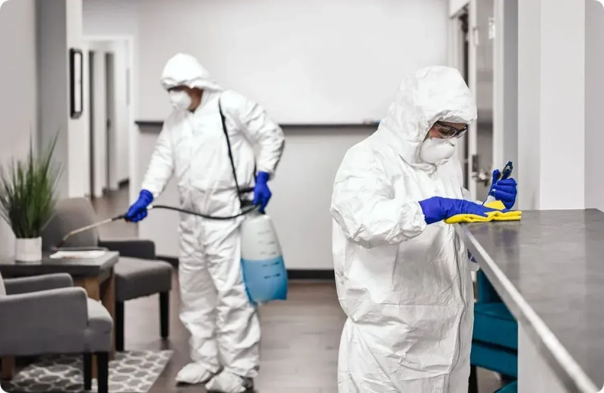 - Дезинфекция помещений — уничтожение вирусов, бактерий и других патогенных микроорганизмов в жилых и коммерческих помещениях.
